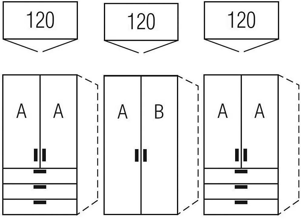 - 7512544 : Hinged door planning wardrobe with 2 doors and 3 drawers.