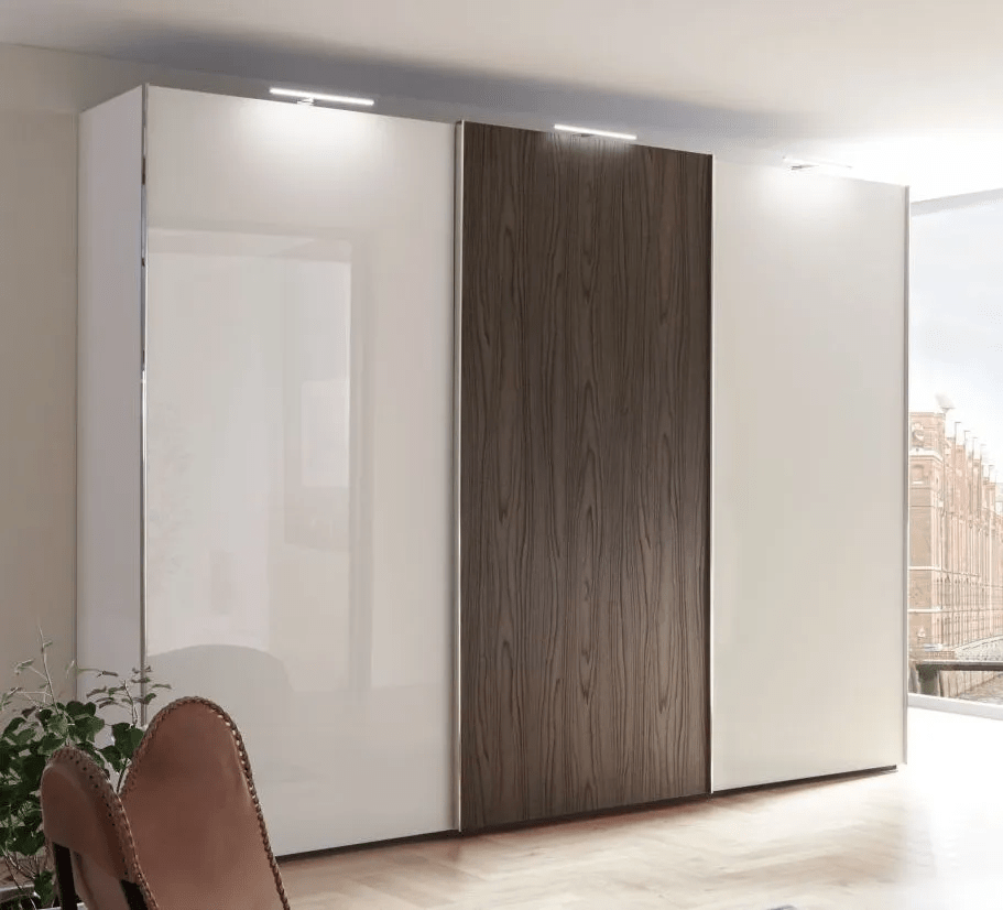 Nolte Concept Me 300 Polar White and Imitation Macadamia Walnut 3 Door Sliding Wardrobe – 300cm